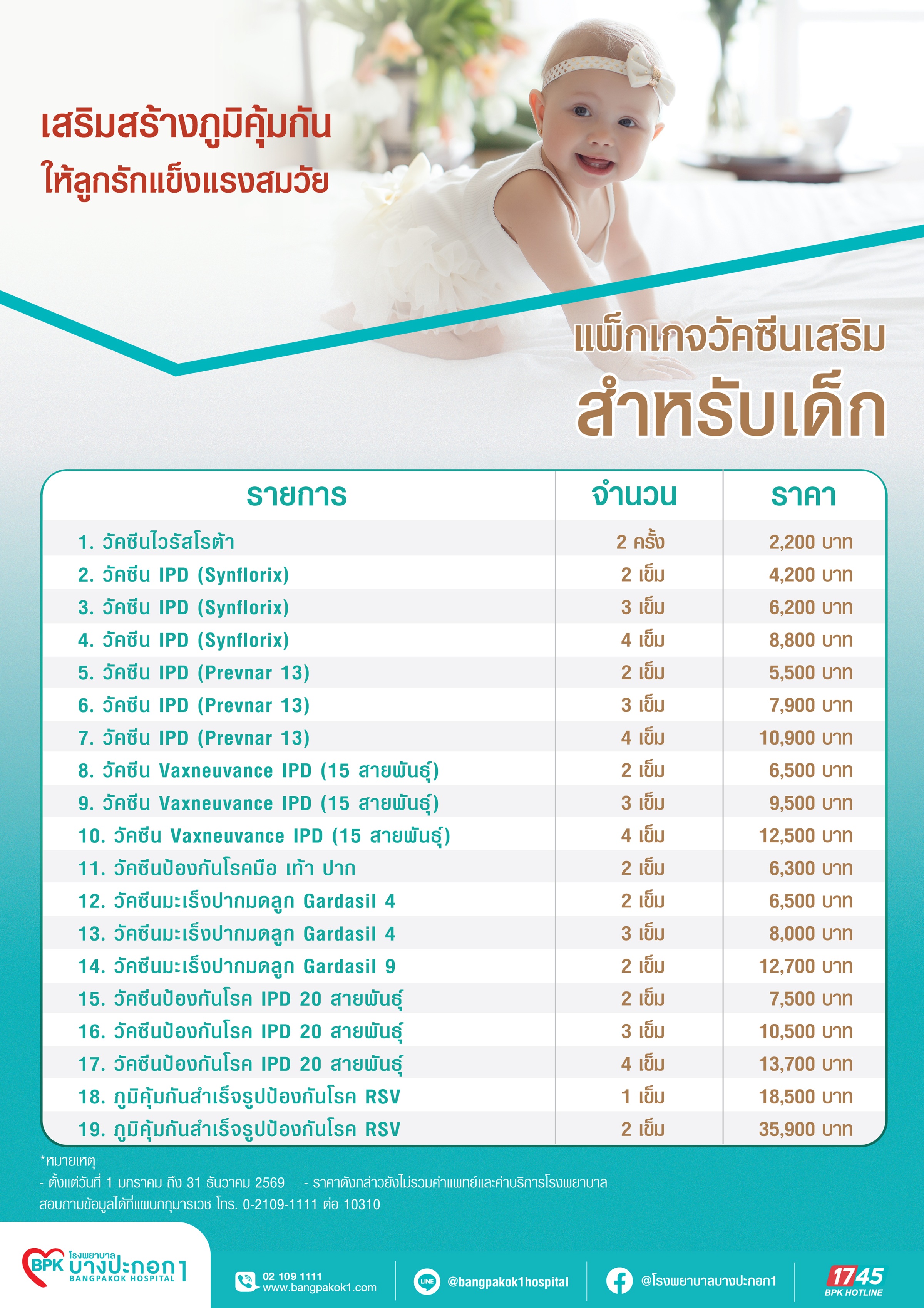 สอบถามข้อมูลเพิ่มเติมได้ที่แผนกกุมารเวช