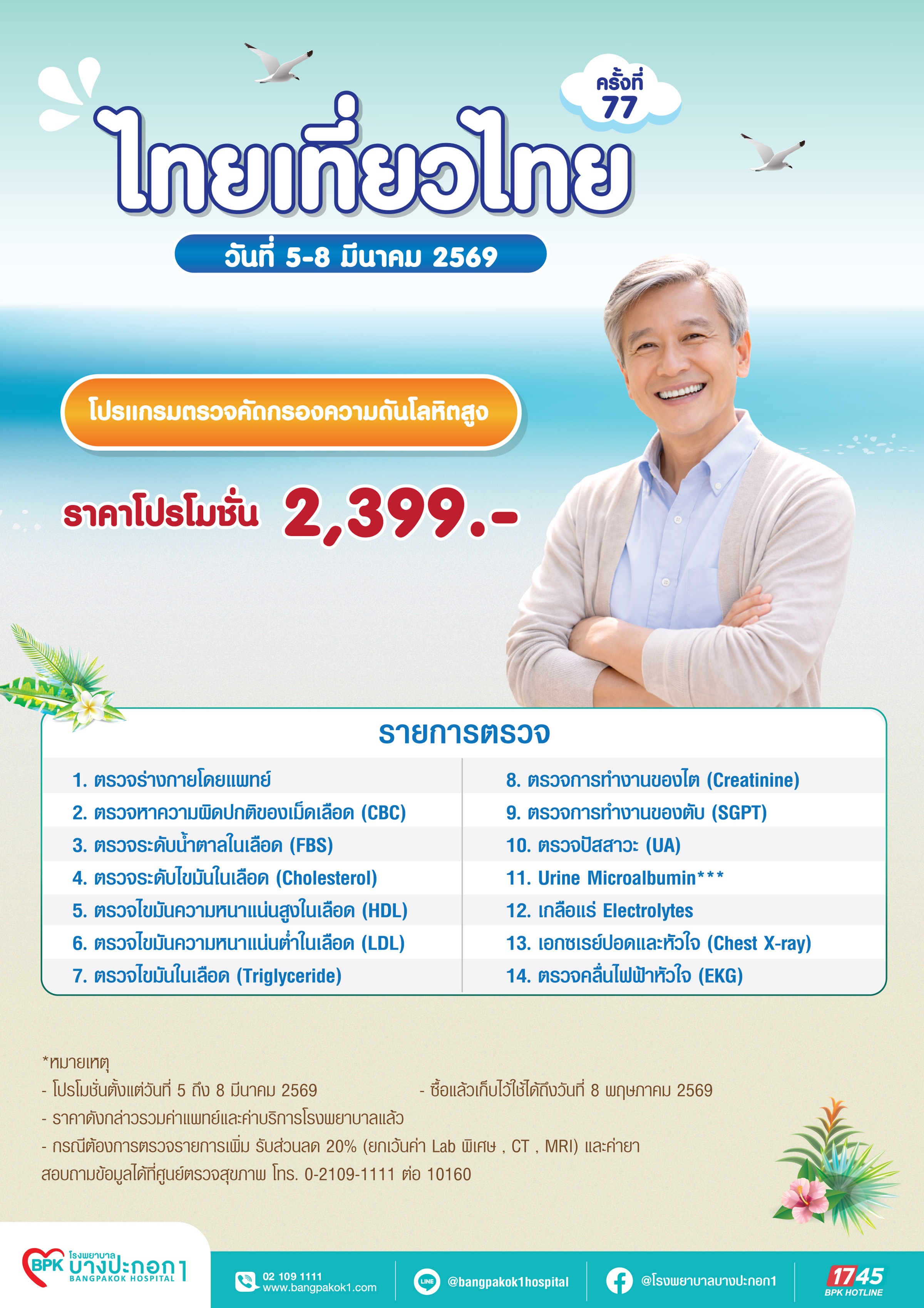 - ราคาดังกล่าวรวมค่าแจ้งผลโดยแพทย์แผนกตรวจสุขภาพและค่าบริการโรงพยาบาลแล้ว