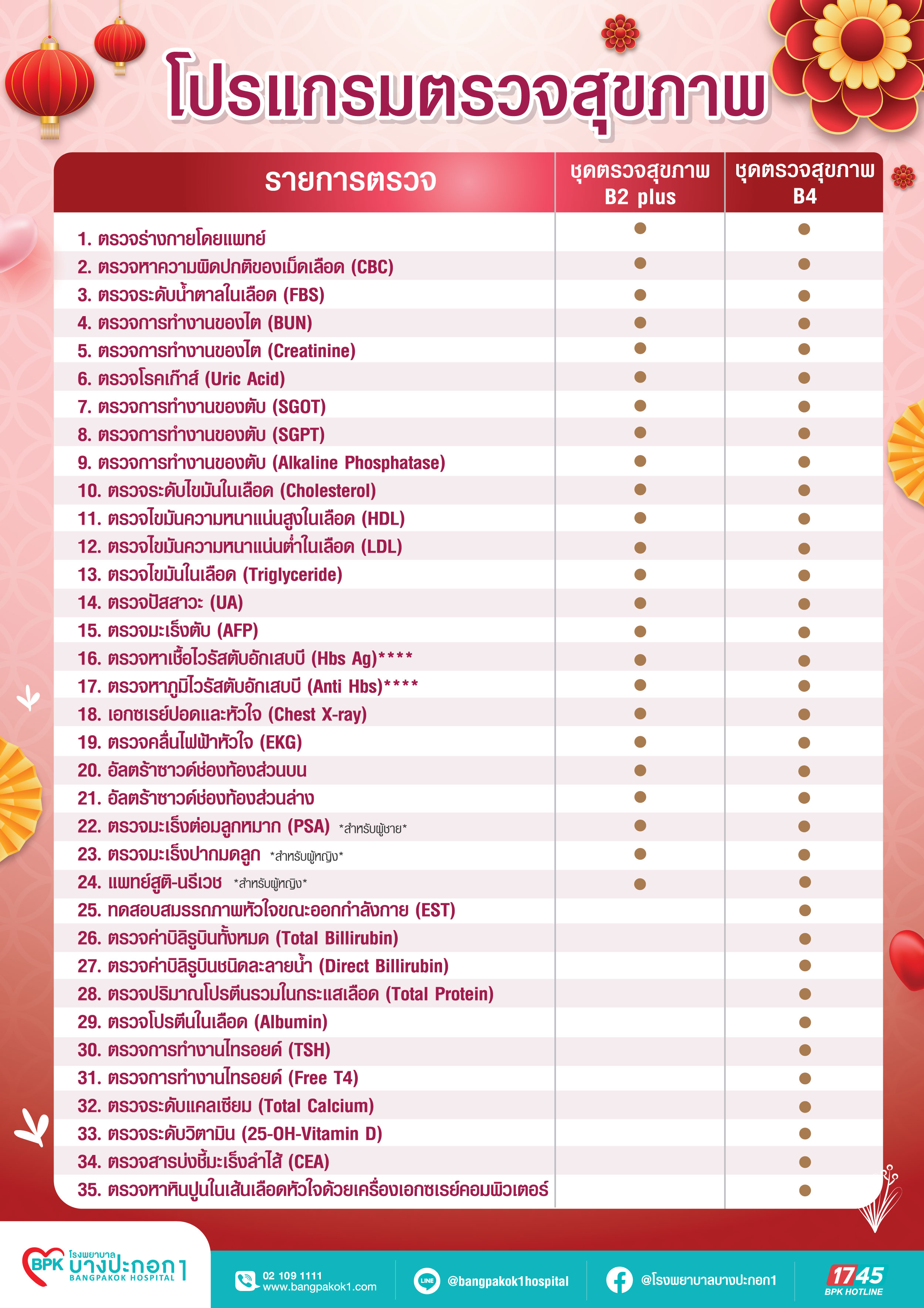 - โปรแกรมตรวจสุขภาพ B2 Plus เหมาะสำหรับผู้ที่มีอายุ 35 ปีขึ้นไป