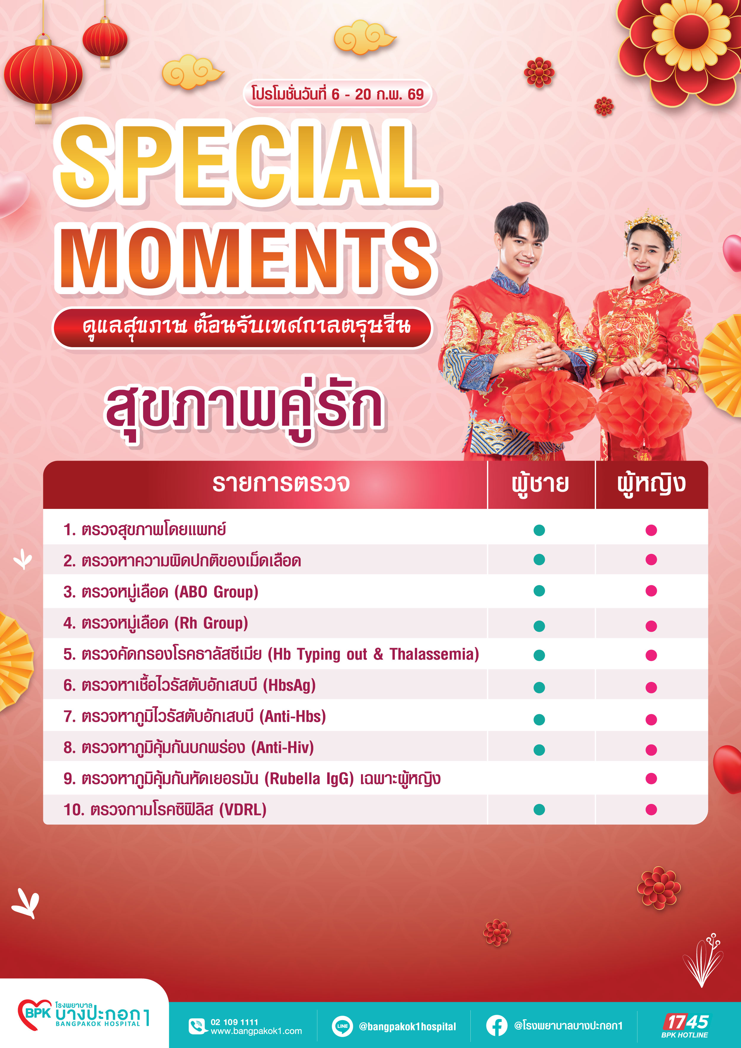 - เมื่อซื้อชุดคู่รักผู้ชายและผู้หญิง รับของที่ระลึกได้ที่บูธ Health shop ชั้น 1 รพ.บางปะกอก 1